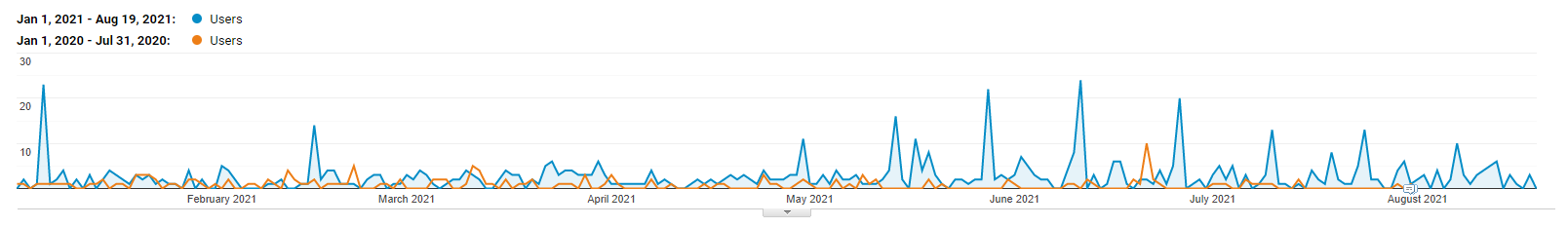 Organic only traffic from January 2021 - July 2021 compared with the previous period